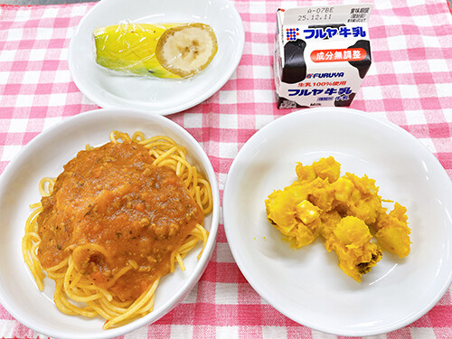 今日の給食(夏見台幼稚園・保育園)2025.12.5 スパゲティミートソース