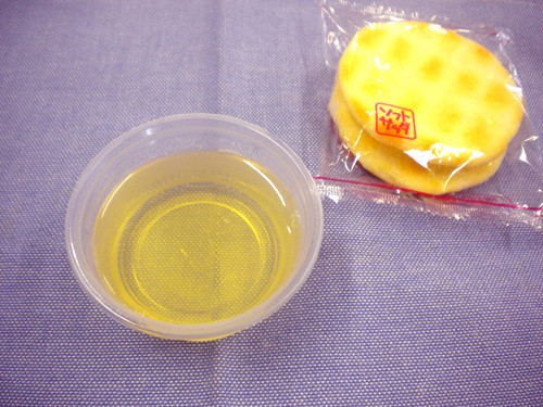 おやつのお好み焼きは長いも入りのふわふわ生地です。