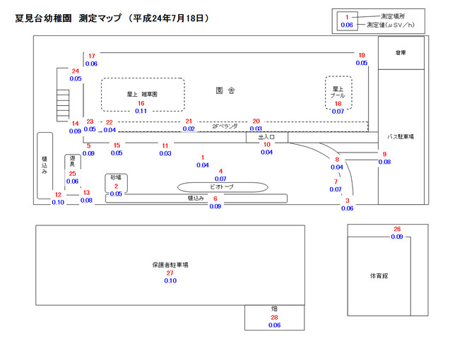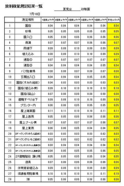 7月の園舎周りの放射線量です。