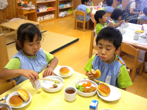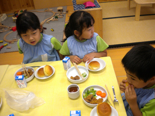 今日の給食(夏見台幼稚園・保育園)2012.7.25 手作りとんかつ
