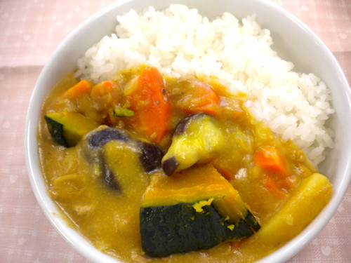 今日のカレーは人参・玉ねぎ・じゃが芋・かぼちゃ・なすが入っています!