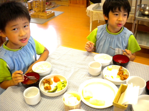 今日の給食(夏見台幼稚園・保育園)2012.8.29 手作りからあげ