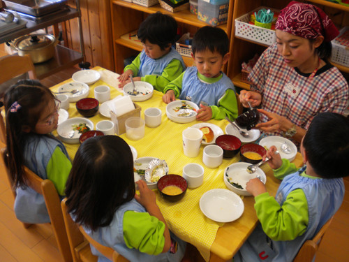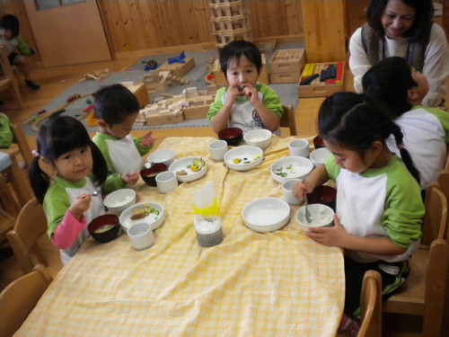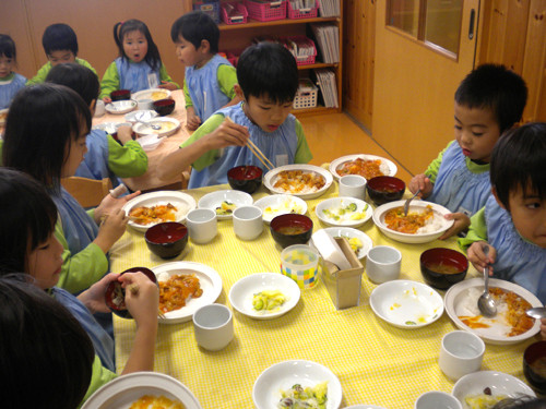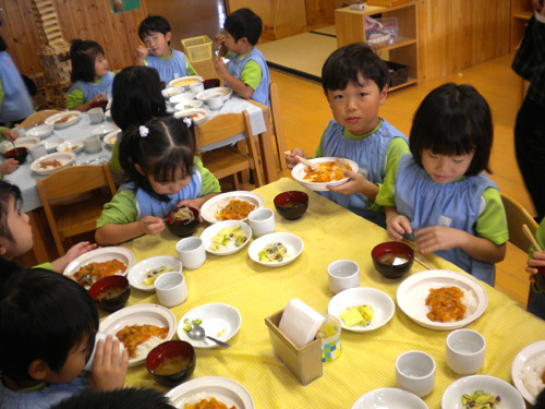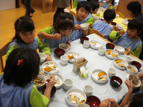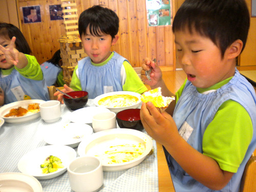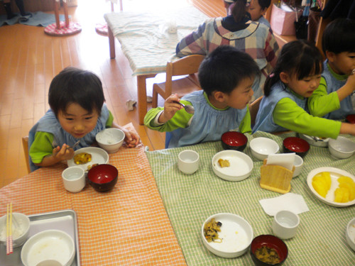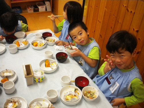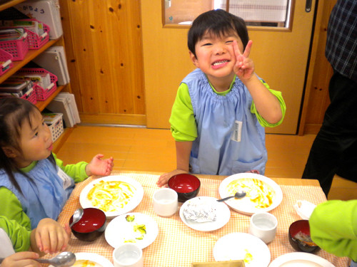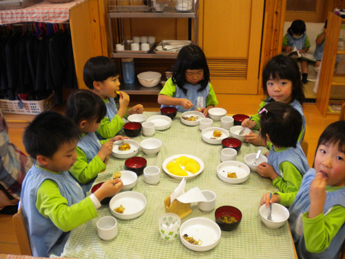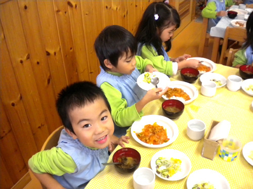 今日の給食(夏見台幼稚園・保育園)2011.11.13 ハヤシライス&スィートポテト作り