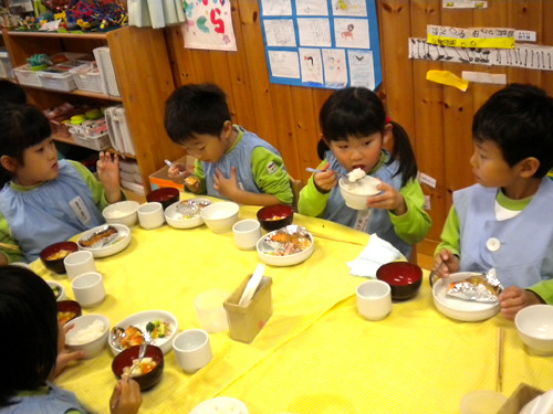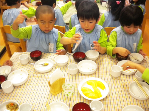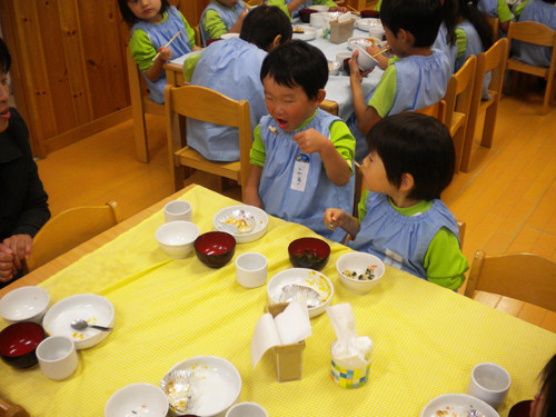 苦手なものやお家では食べないものも園では食べられちゃうみたいですね♪