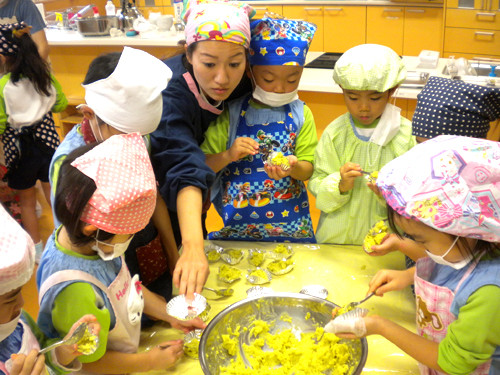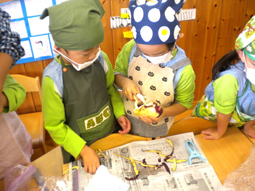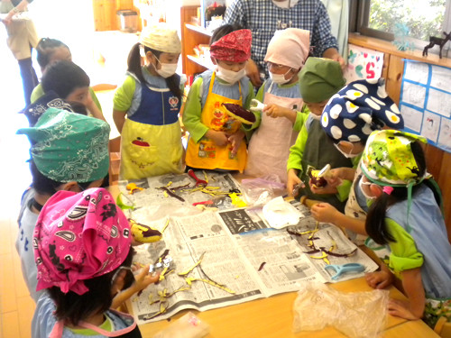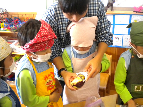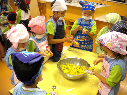 今日は幼児3クラスの年長さんがスイートポテト作りを行いました。