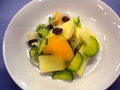 白菜、きゅうり、りんご、みかん缶、レーズンが入っています☆