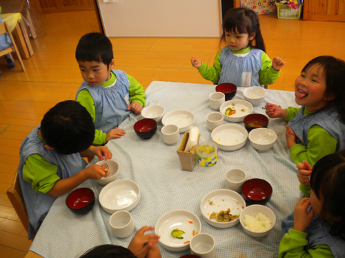 今日の給食は、年長だけの兄弟クラスでとりました。