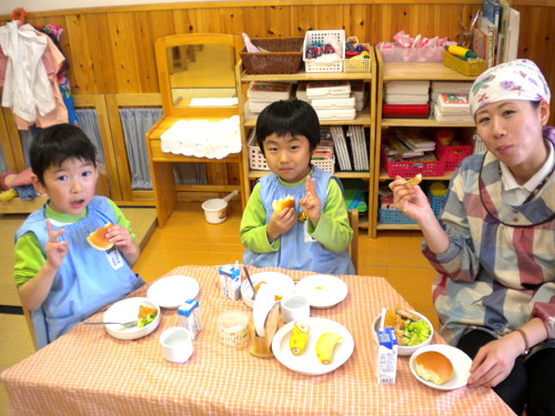 今日のおやつ(保育園と幼稚園Bコース、Aコース預かり保育)は、