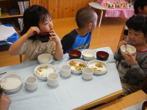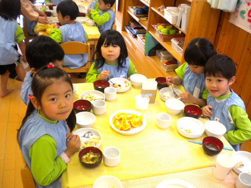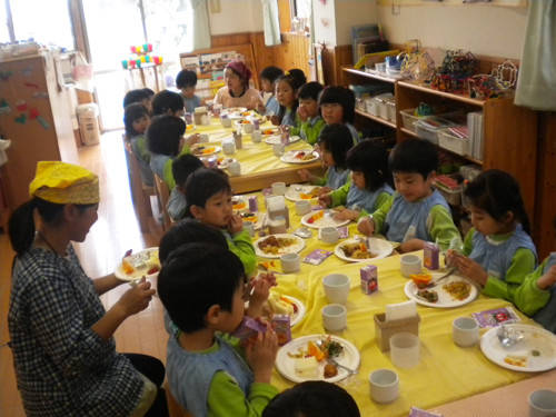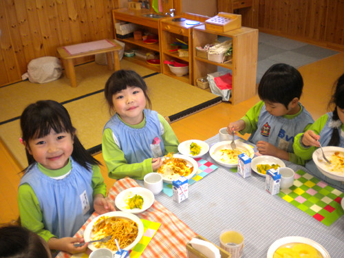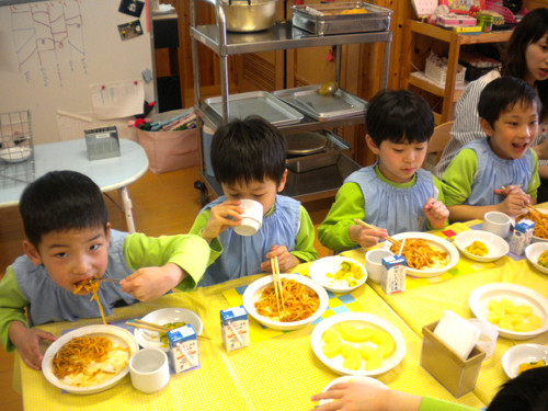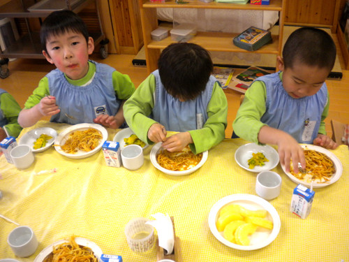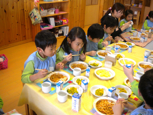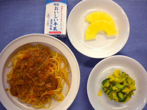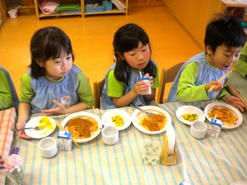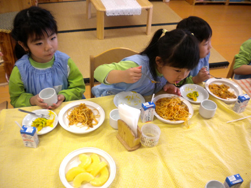 今日の給食(夏見台幼稚園・保育園)2013.3.15 スパゲティミートソース