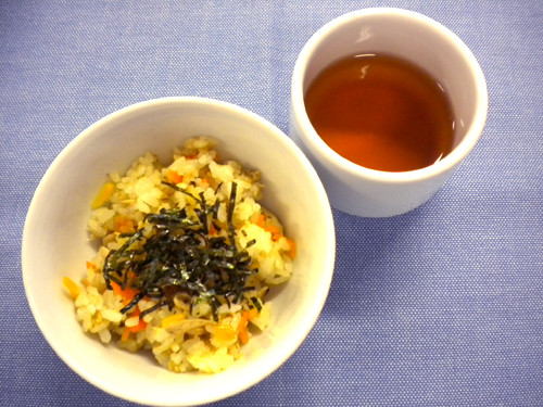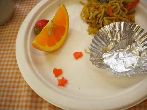 ビビンバおにぎりには小さく型抜きした☆や♡の人参をちりばめました☆☆