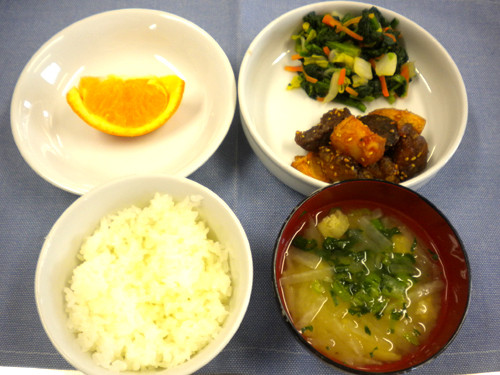 今日の給食(夏見台幼稚園・保育園)2013.3.12 鶏レバーの変わりソース和え