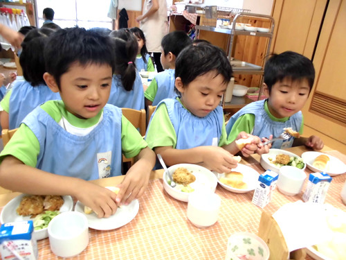 今日の給食(夏見台幼稚園・保育園)2013.8.22 鶏のフレーク焼き