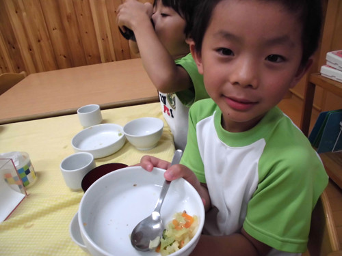 今日の給食(夏見台幼稚園・保育園)2013.8.30 ポークビーンズ