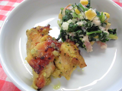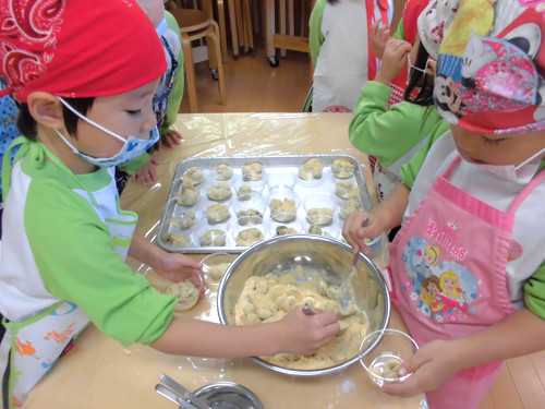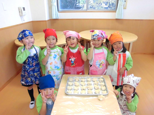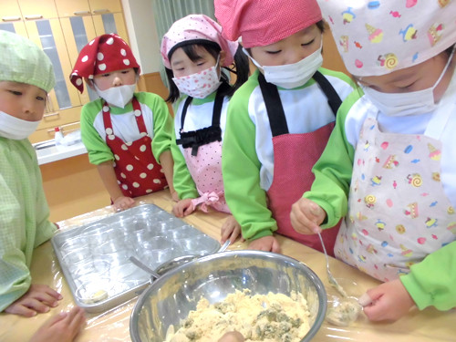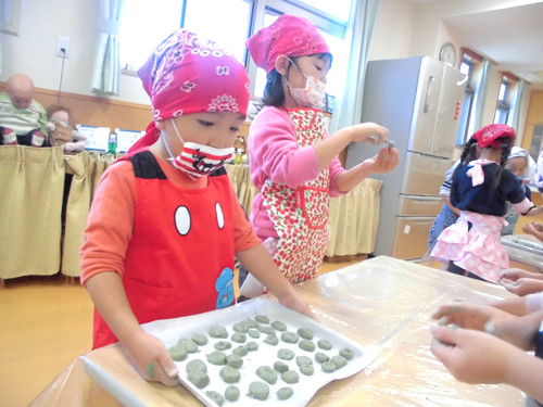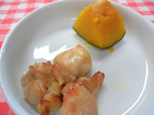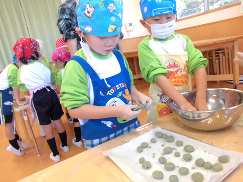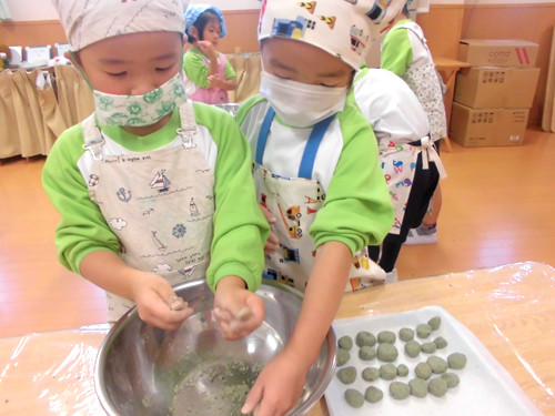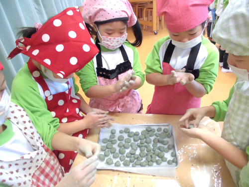 今日の給食(夏見台幼稚園・保育園)2013.11.22 鶏の塩焼き&クッキング保育「よもぎ団子」