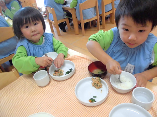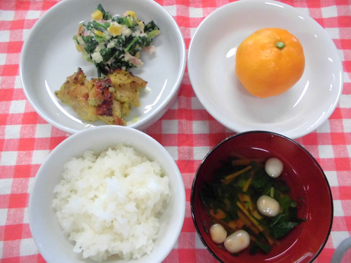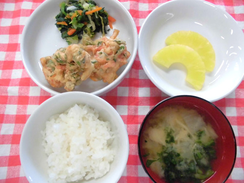 今日の給食(夏見台幼稚園・保育園)2013.11.27 五目かきあげ
