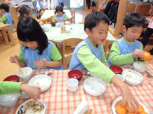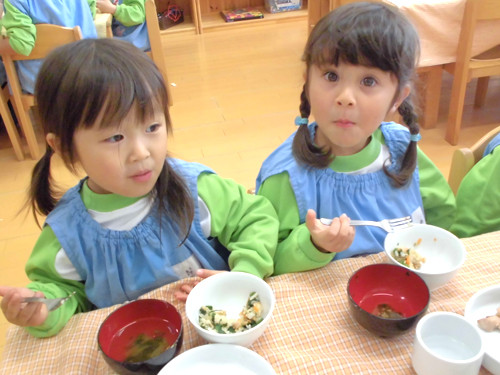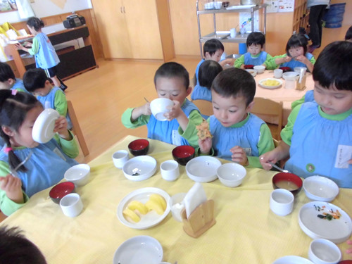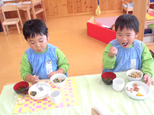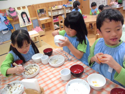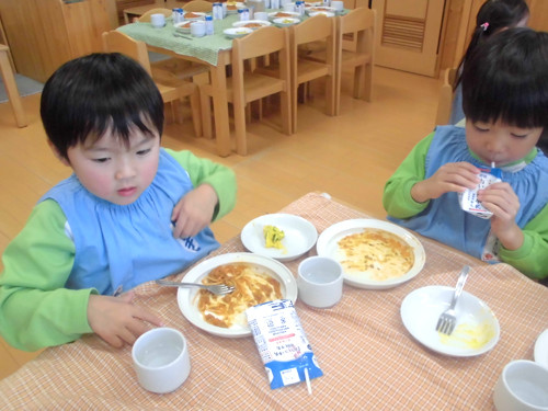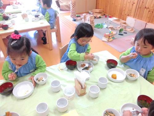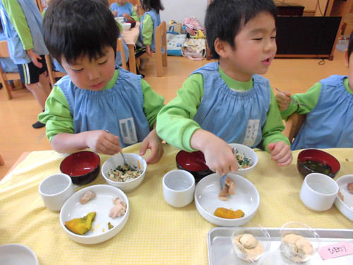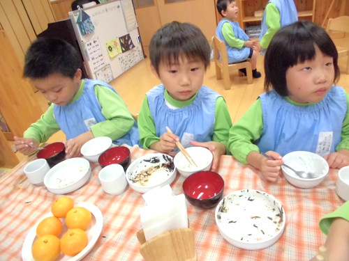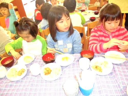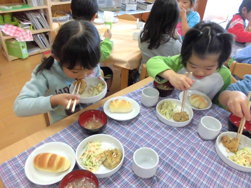今日の給食(夏見台幼稚園・保育園)2013.11.26 手綱巻き