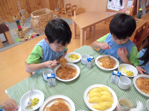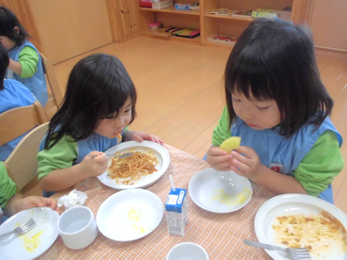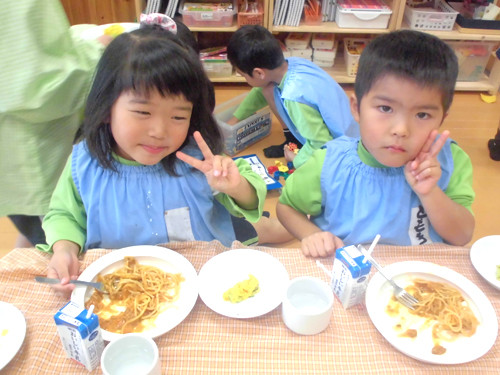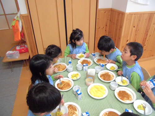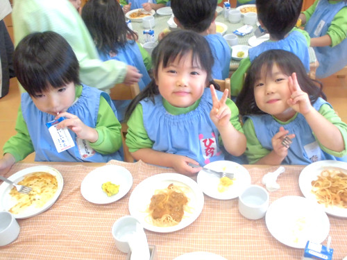今日の給食(夏見台幼稚園・保育園)2013.11.19 スパゲティミートソース