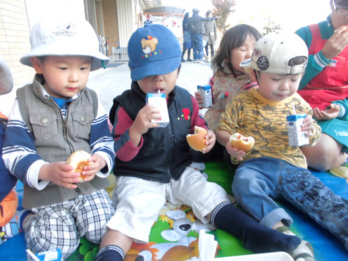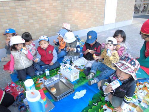 事務所の前にレジャーシートを広げてプチピクニックを楽しんでいました(^^)