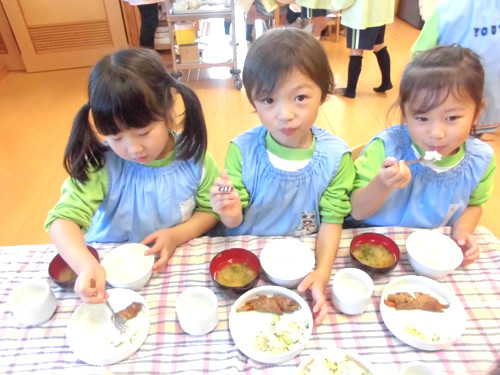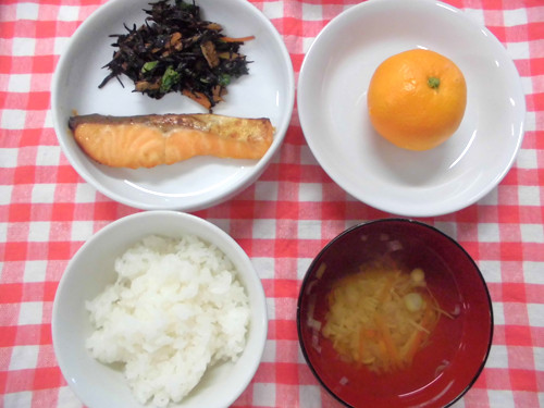 今日の給食(夏見台幼稚園・保育園)2013.11.25 鮭の西京焼き