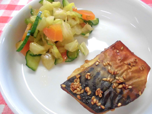 今日の給食(夏見台幼稚園・保育園)2014.3.24 さばのごまだれ焼き
