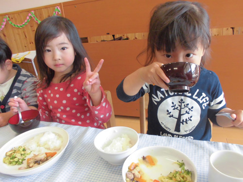 今日の給食(夏見台幼稚園・保育園)2014.3.20 すき焼き煮