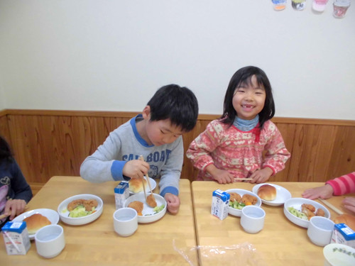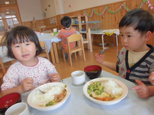 今日の給食(夏見台幼稚園・保育園)2014.3.28 カレー肉じゃが