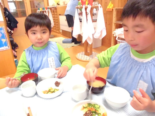 お当番をしているお友達と一緒にいただきますしたい!と言って