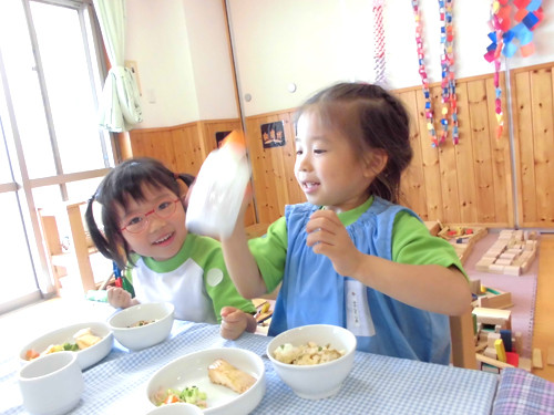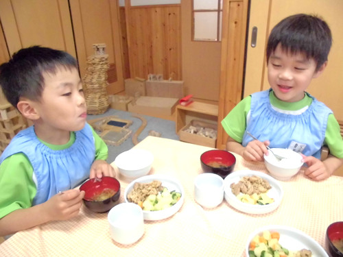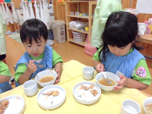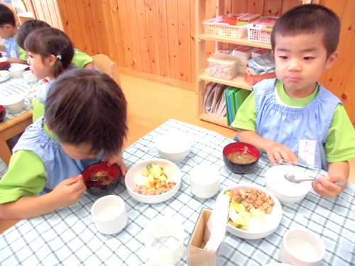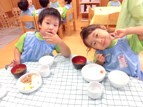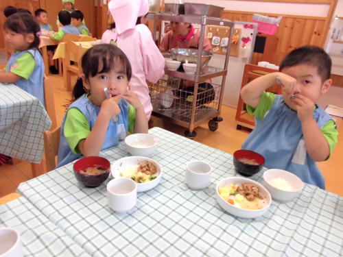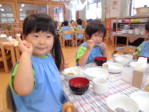 今日の給食(夏見台幼稚園・保育園)2014.6.25 さんまの蒲焼風