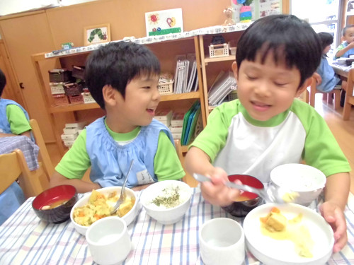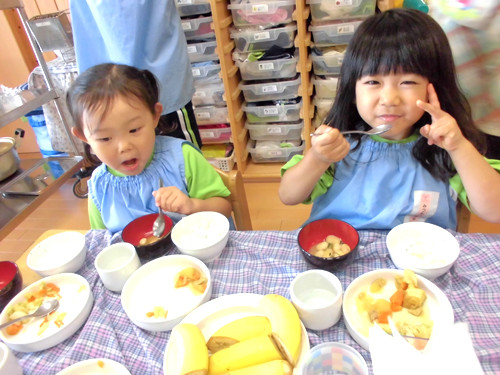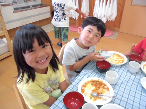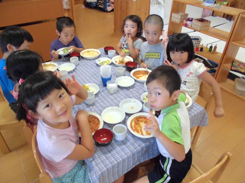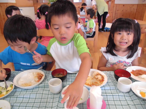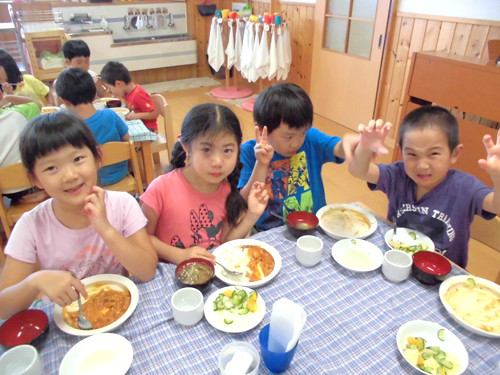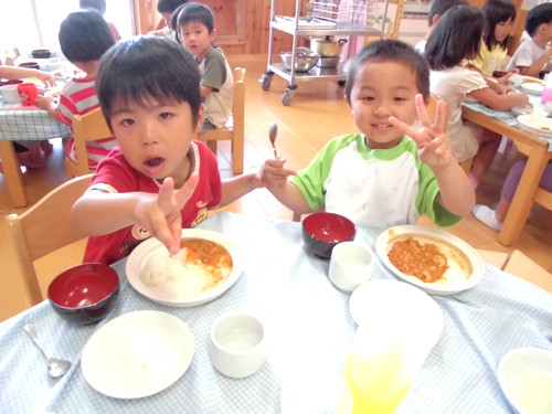 今日の給食(夏見台幼稚園・保育園)2014.7.24 カレー肉じゃが