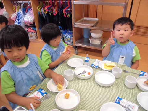 今日のおやつ(保育園と幼稚園Bコース、Aコース預かり保育)は、