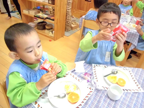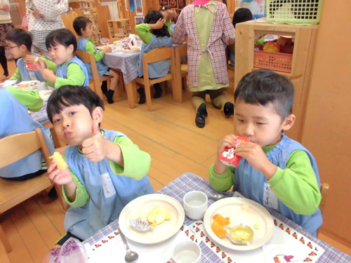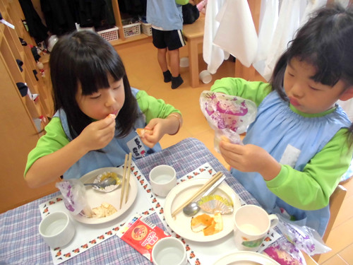 今日のおやつ(保育園と幼稚園Bコース、Aコース預かり保育)は、