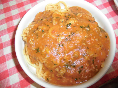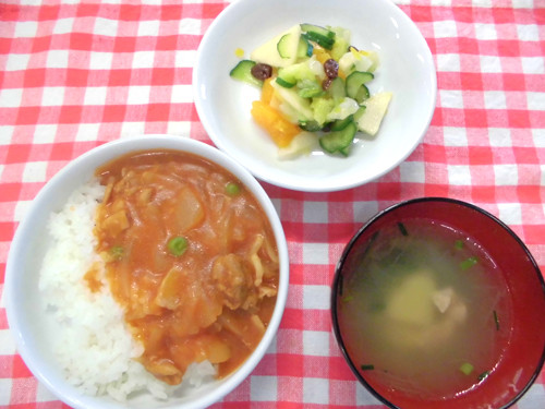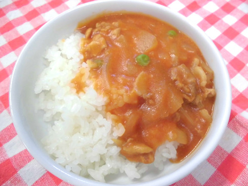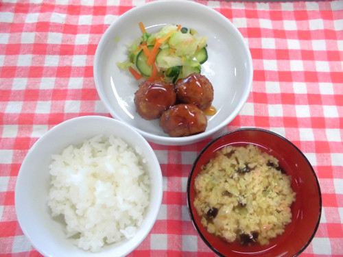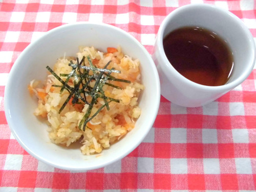ごはんは、ウインナー・人参・コーン・グリーンピースをバターと塩で調味したバターライスです。