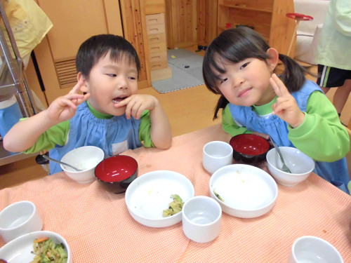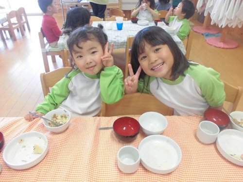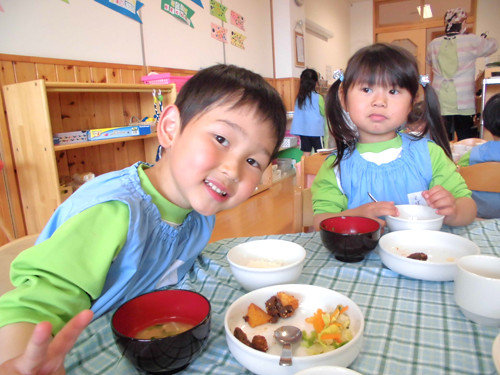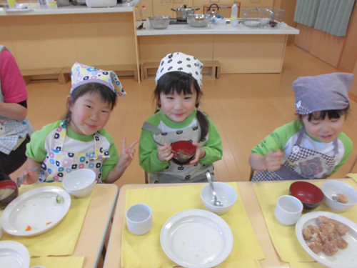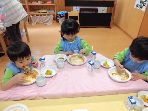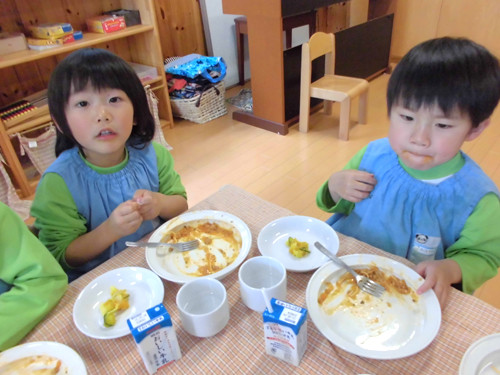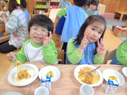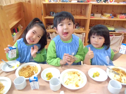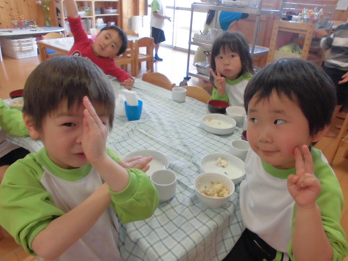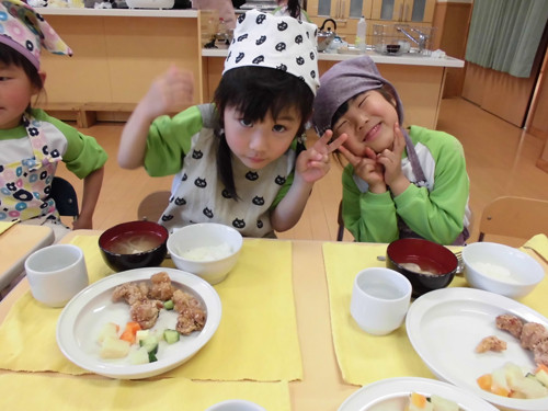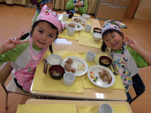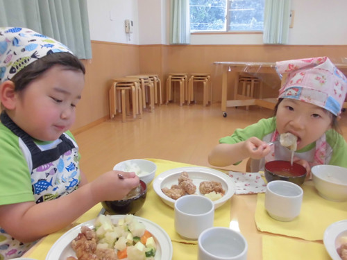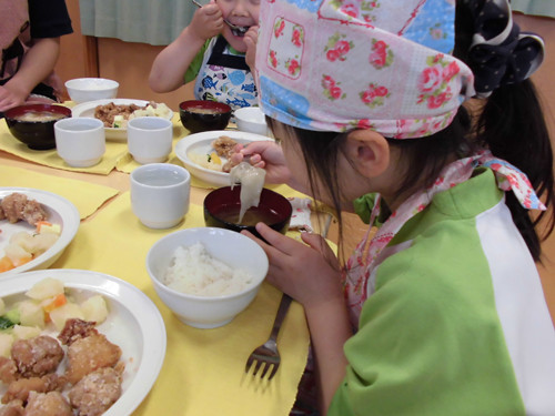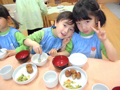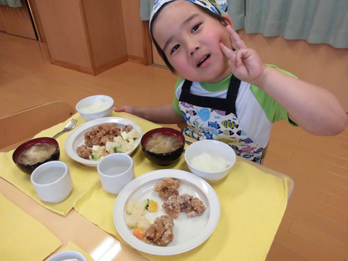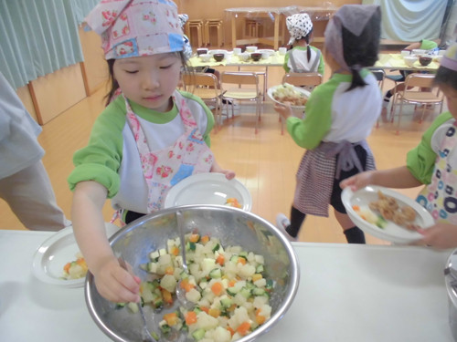 今日の給食(夏見台幼稚園・保育園)2015.4.27 ハヤシライス&キッズクッキング!
