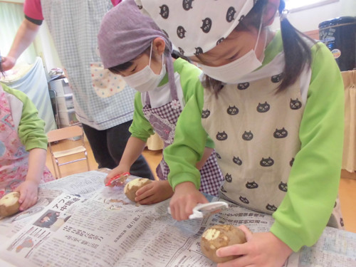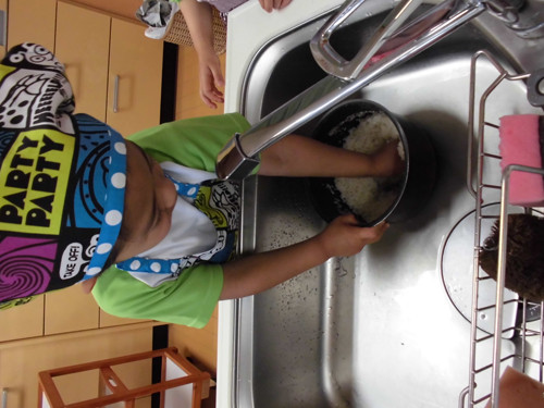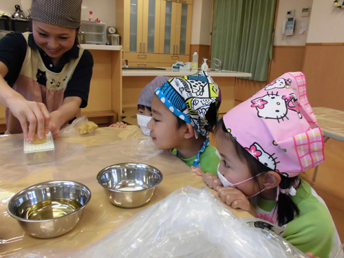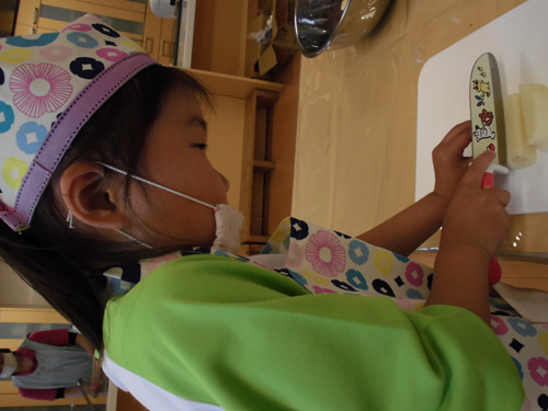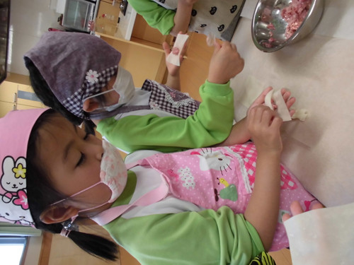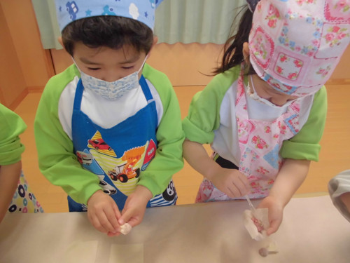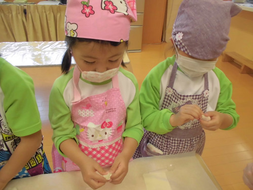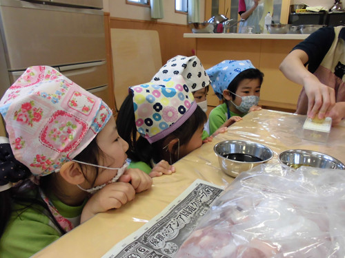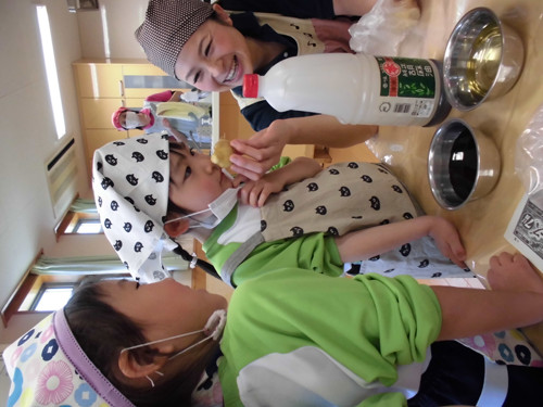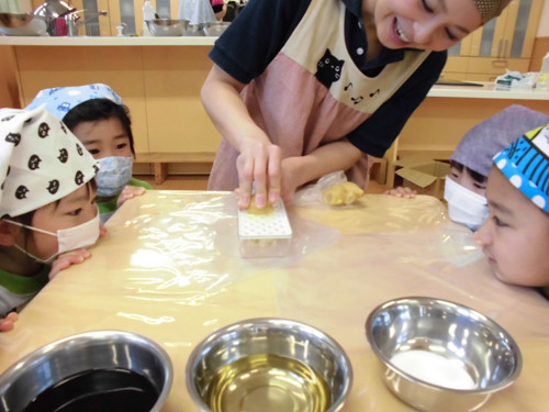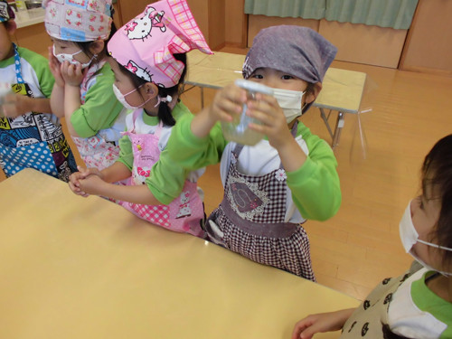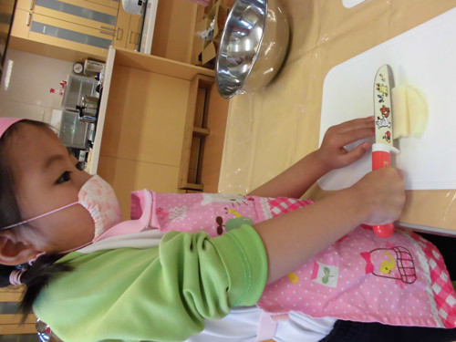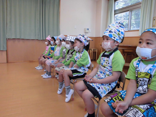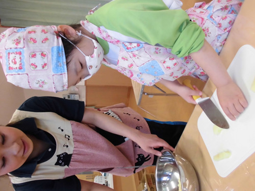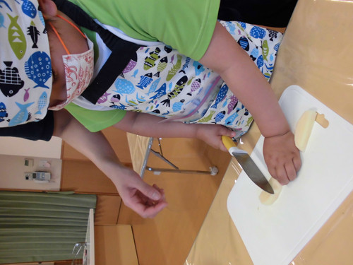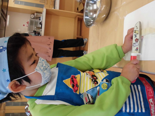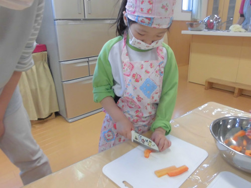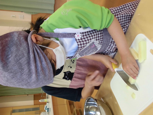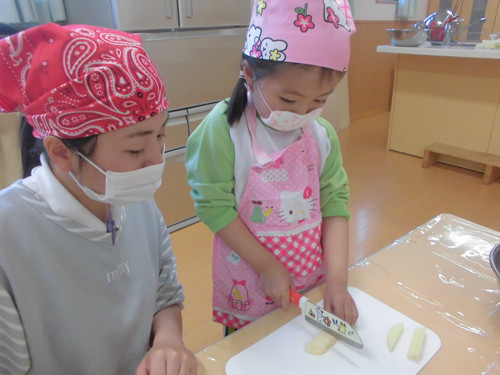 今日はなのはな組年長さんがキッズクッキングを行いました。