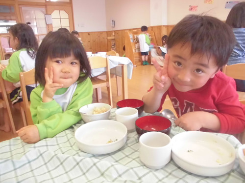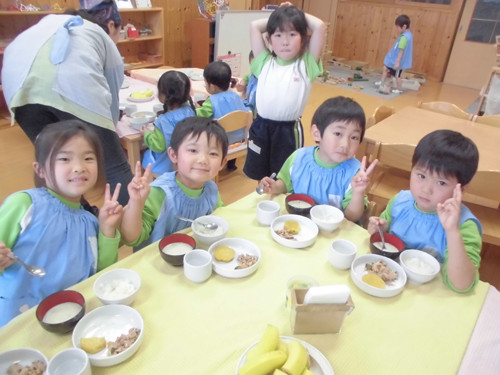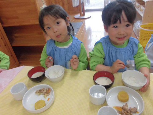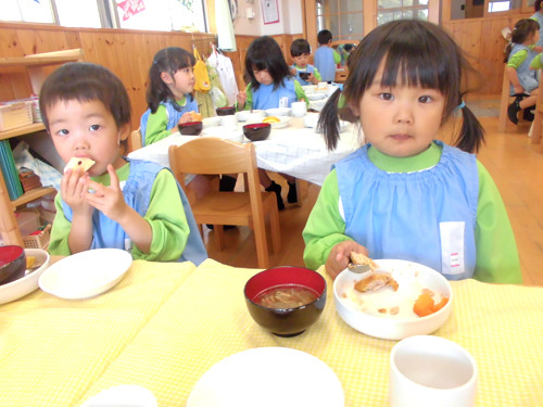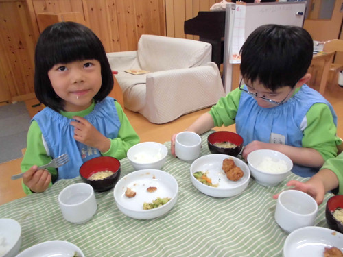 今日の給食(夏見台幼稚園・保育園)2015.4.30 さんが焼き