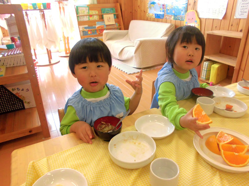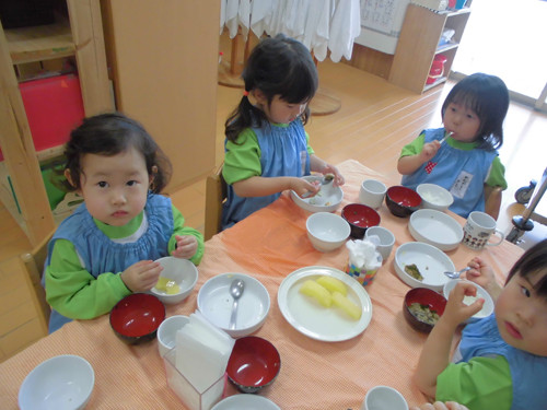 今日のおやつ(保育園と幼稚園Bコース、Aコース預かり保育)は、