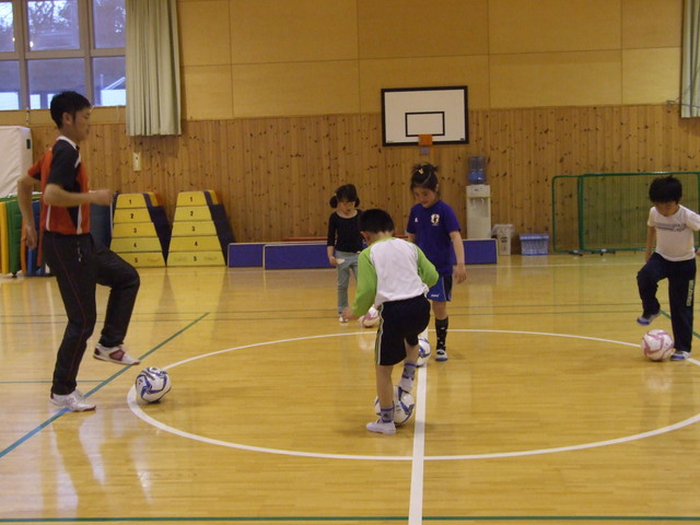 水曜日に小学生のコーディネーション教室、金曜日に小学生のフットサル教室を開講しています。