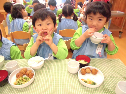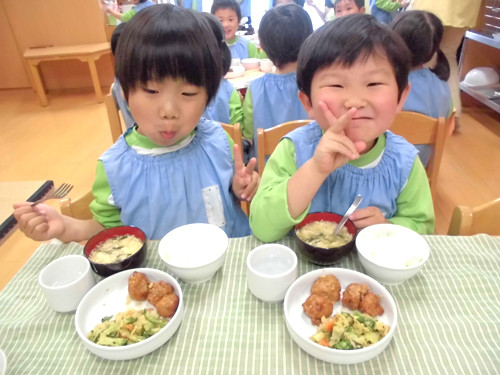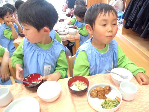 今日の給食(夏見台幼稚園・保育園)2015.4.22 肉団子