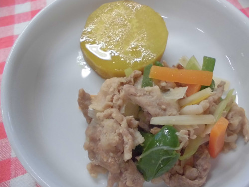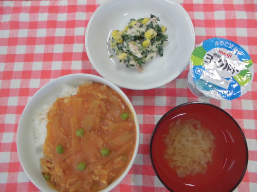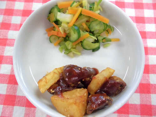今日の給食(夏見台幼稚園・保育園)2015.4.28 鶏レバーの変わりソースあえ