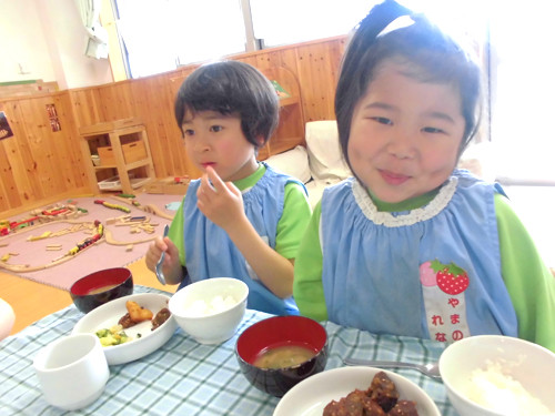 今日の給食(夏見台幼稚園・保育園)2015.4.24 煮込みハンバーグ