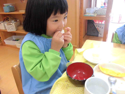 今日の給食(夏見台幼稚園・保育園)2015.4.23 カレイの照り焼き