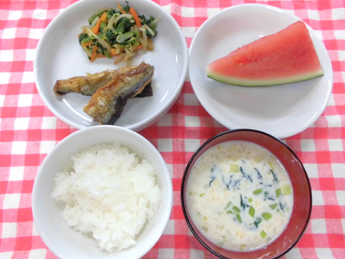 今日の給食(夏見台幼稚園・保育園)2016.6.29 さんまのかば焼き風