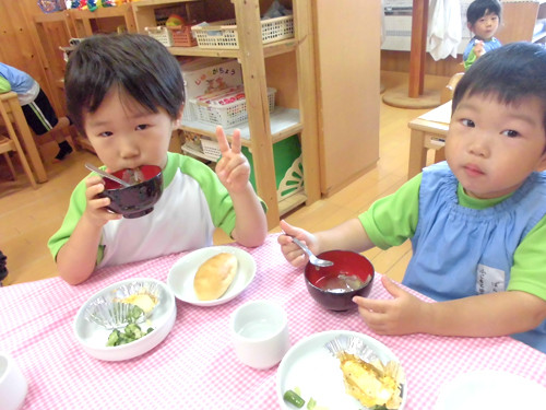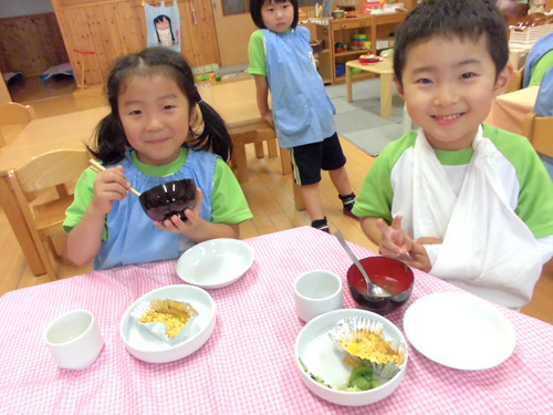 今日の給食(夏見台幼稚園・保育園)2016.6.17 ふくさやき卵
