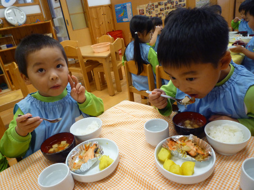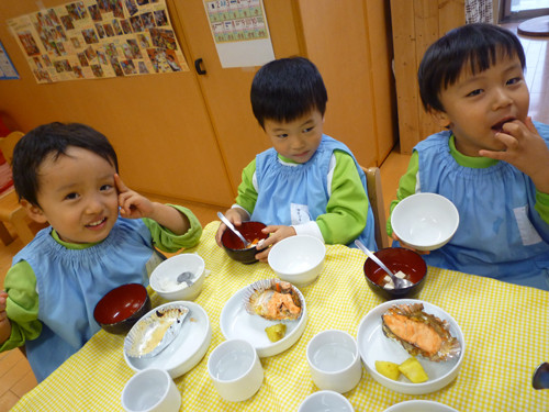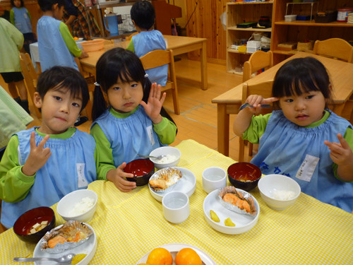 今日の給食(夏見台幼稚園・保育園)2016.11.14 鮭のチャンチャン焼き