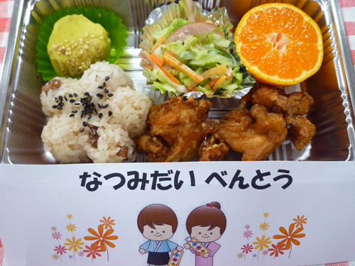 おかずは、人気の鶏のから揚げ・コールスローサラダ・栗坊主です。