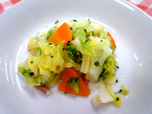 野菜をしっかり押さえて慎重に、上手に切れました!