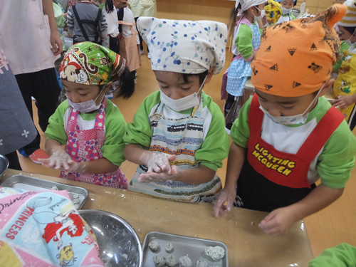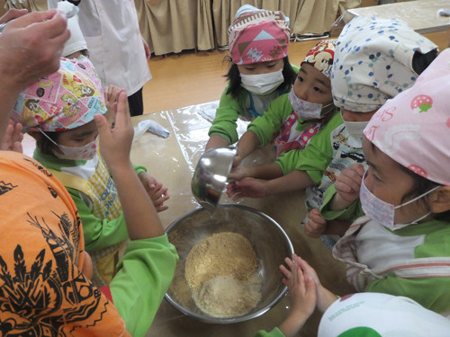 きなこの香りを嗅いだり、それぞれの楽しみ方でクッキングを満喫していました♪