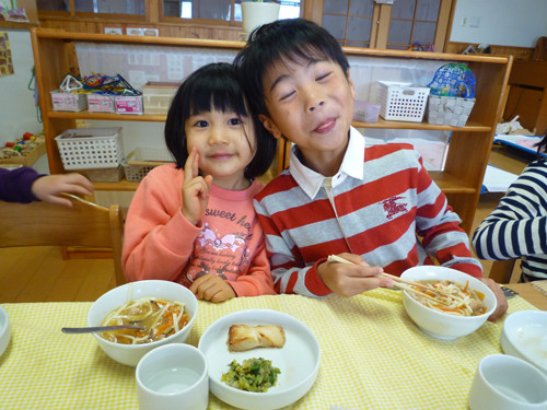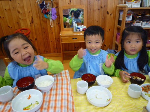 今日の給食(夏見台幼稚園・保育園)2016.11.8 鉄板焼き