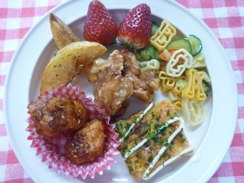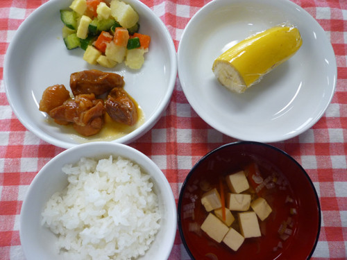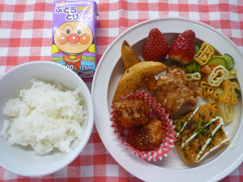 今日の給食(夏見台幼稚園・保育園)2017.3.8 鶏のからあげ・マグロのノルウェー風
