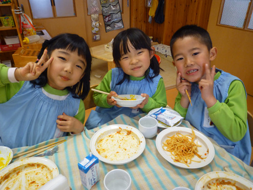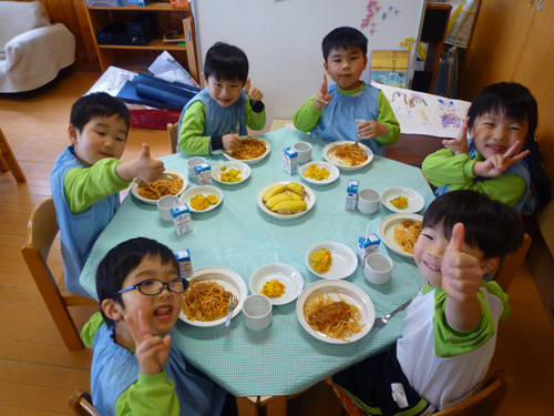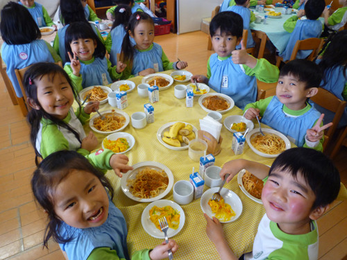 今日の給食(夏見台幼稚園・保育園)2017.3.10 スパゲティミートソース